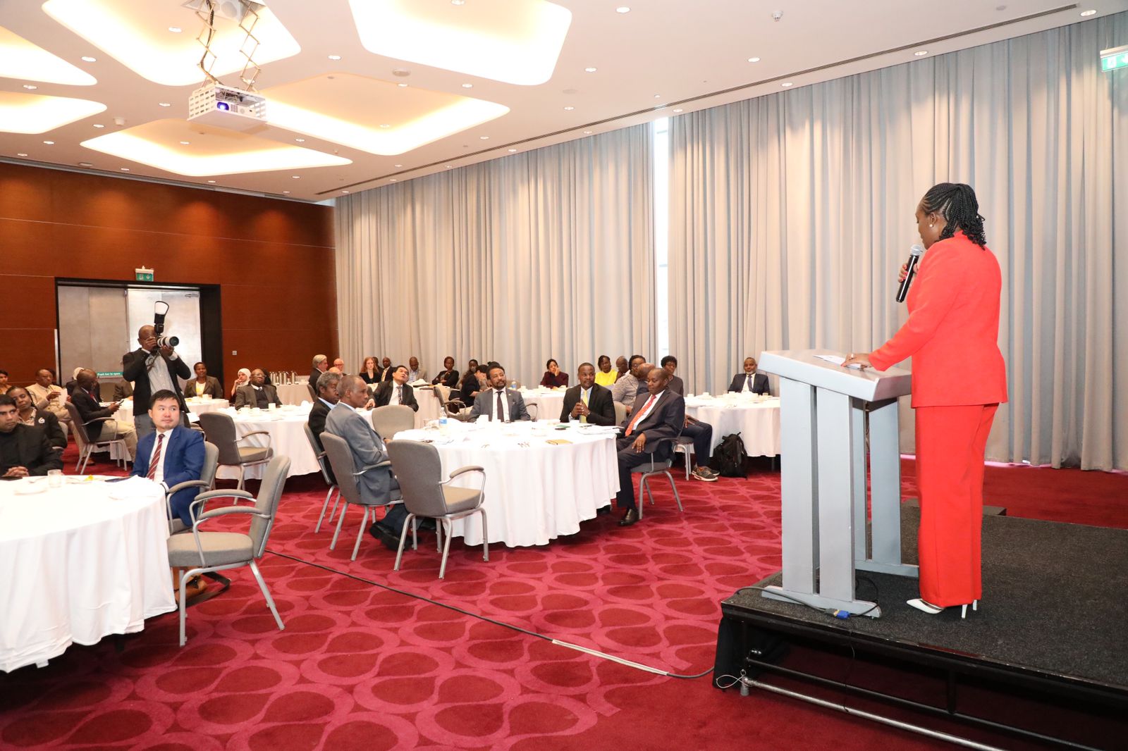 Cabinet Secretary Hon Soipan Tuya presiding over a diplomatic briefing of the African Ambassadors on the inaugural Africa Climate Summit (ACS) to be held in Nairobi from 4th to 6th Sept this year 1/2