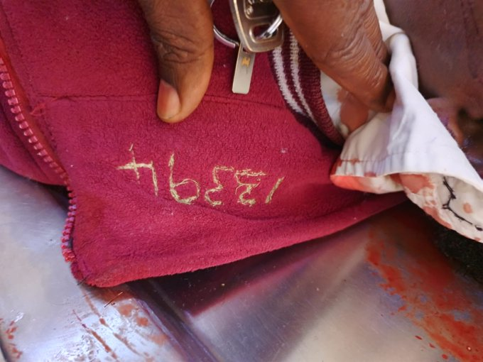 Deceased girls pullover with her admission number